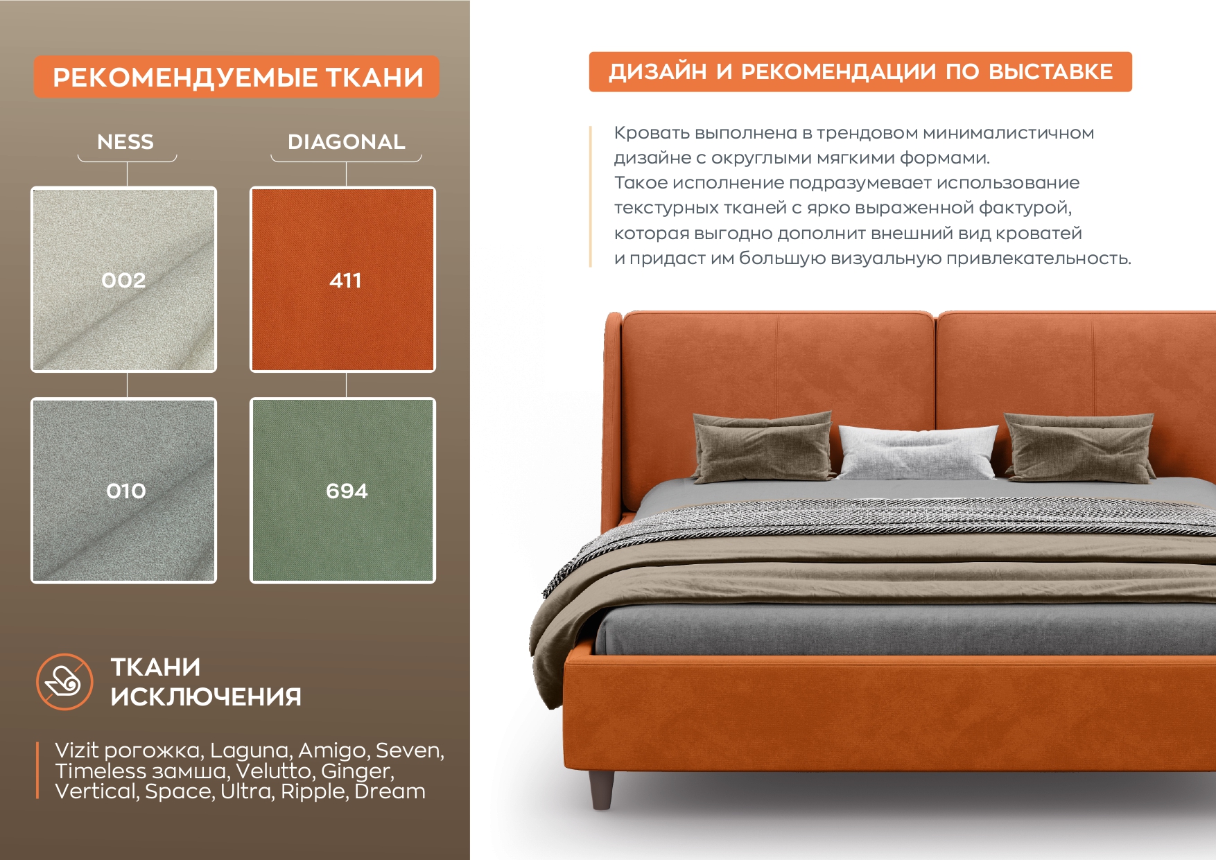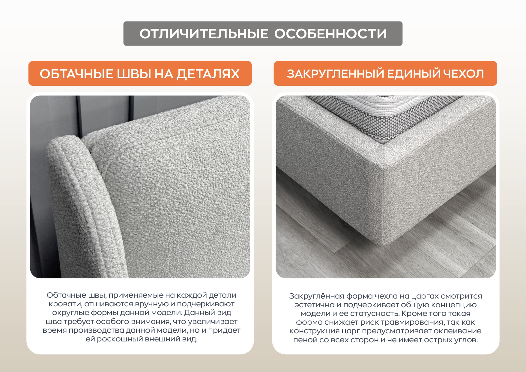 Интерьерная кровать «Michele» - эксклюзивная модель в которой каждая строчка отшита вручную, что подчеркивает ее изысканный внешний вид и безупречную форму каждой детали. Ножки в комплекте: металлические черные