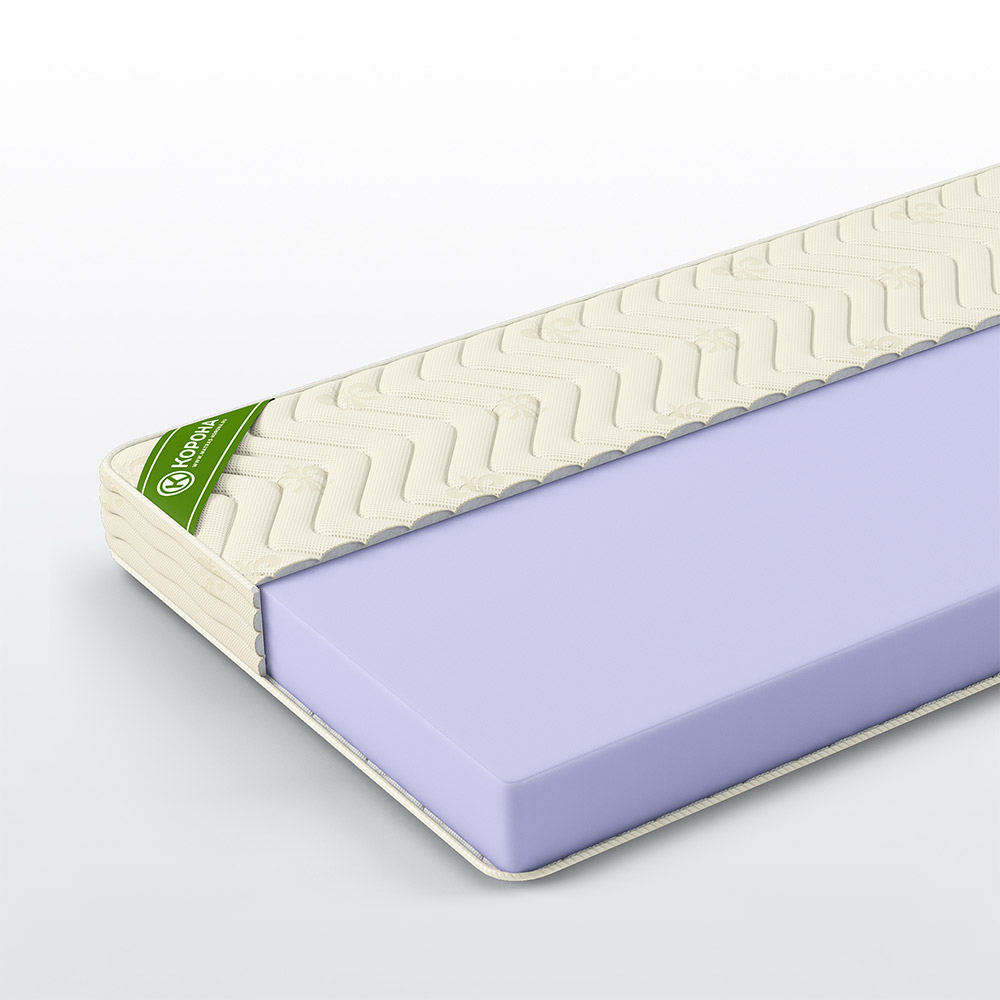 Матрас из моноблока ортопедической пены высокой плотности «Ormaform». Данный материал благодаря своей структуре обладает рядом преимуществ перед другими наполнителями. Такая пена выдерживает большой вес, не проминается, не разрушается под высокими локальными нагрузками - по ней можно ходить, сгибать и скручивать без риска ее повреждения. Матрас довольно жесткий и подойдет в первую очередь для тех, кто спит на спине.